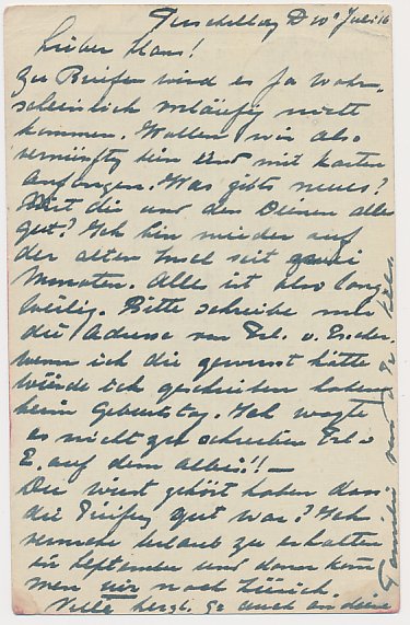 Grootrondstempel Hoorn (Terschelling) - Zurich Zwitserland 1916