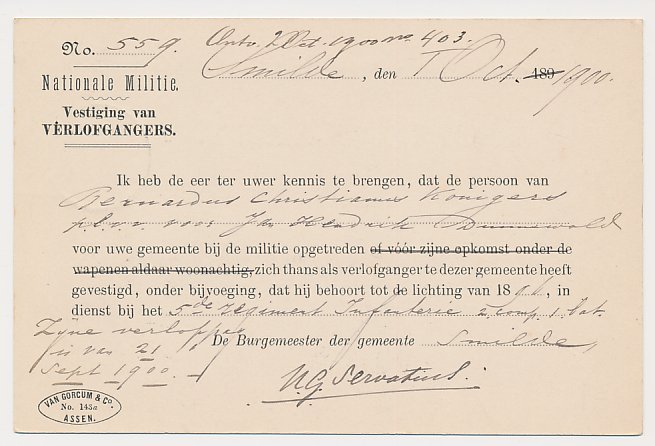 Dienst Smilde 1.10.1900