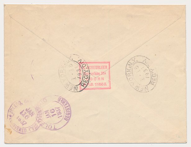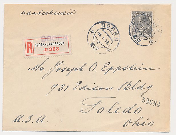 Aangetekend Doorn 1937 - Overstempeld strookje Neder-Langbroek