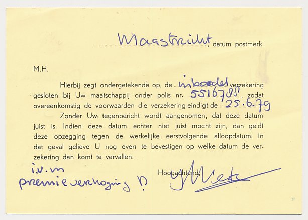 Aangetekend Maastricht Stationstraat 1979 - Overstempeld strookje