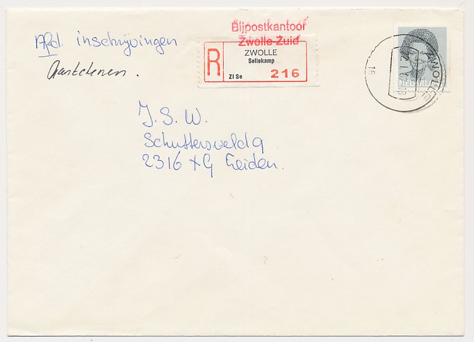 Aangetekend Zwolle Zuid 1987 - Overstempeld strookje Sellekamp