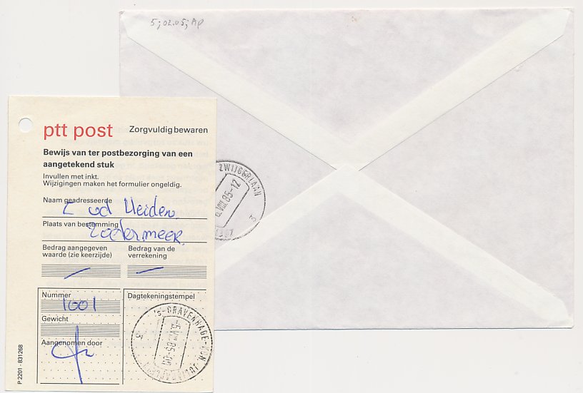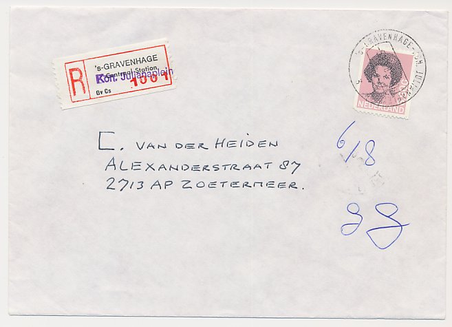 Aangetekend s Gravenhage Julianaplein 1985 - Overstempeld strookje