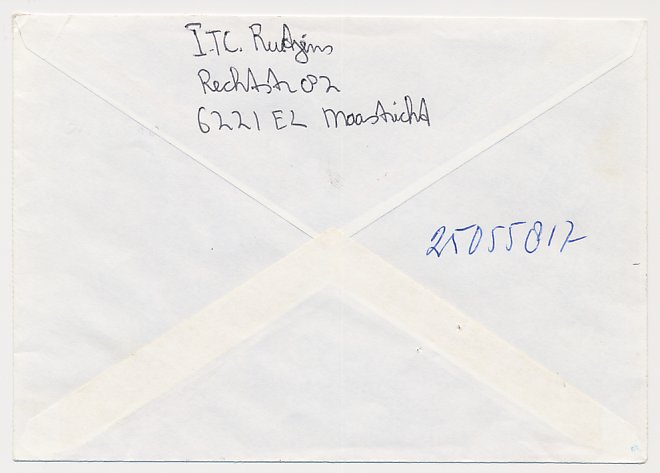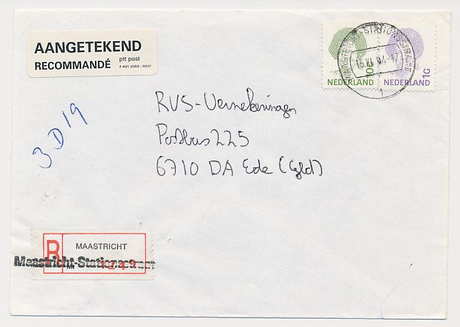 Aangetekend Maastricht Statitonsstraat 1994 - Overstempeld strookje