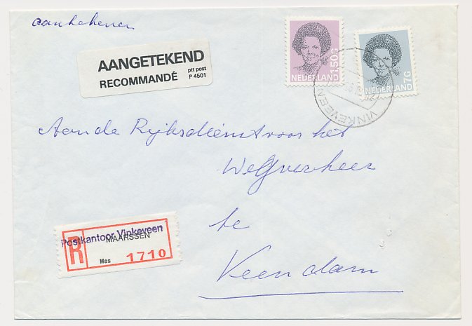 Aangetekend Maarssen Julianaweg 1985 - Overstempeld strookje