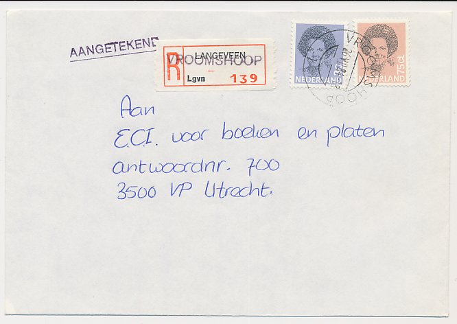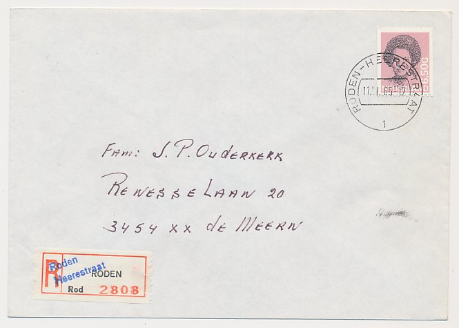 Aangetekend Roden Heerestraat 1985 - Overstempeld strookje