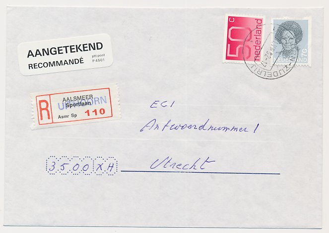 Aangetekend Uithoorn 1992 - Overstempeld strookje Aalsmeer