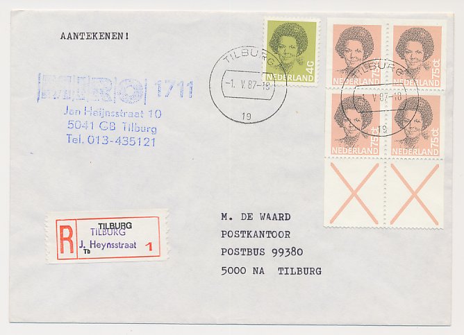 Aangetekend Tilburg J. Heynsstraat 1987 - Overstempeld strookje