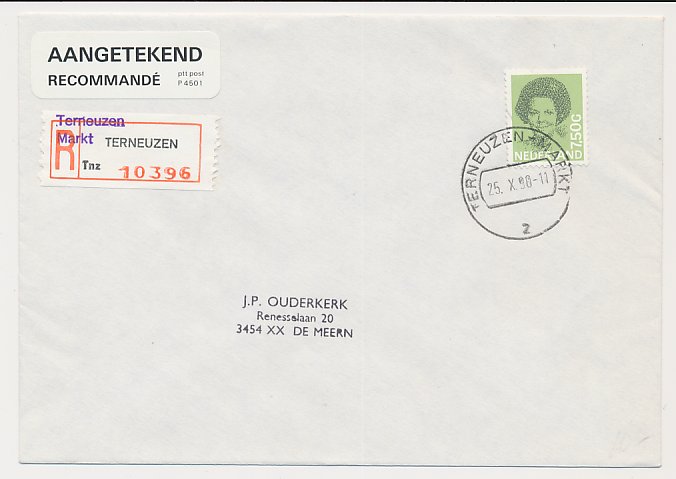 Aangetekend Terneuzen Markt 1990 - Overstempeld strookje