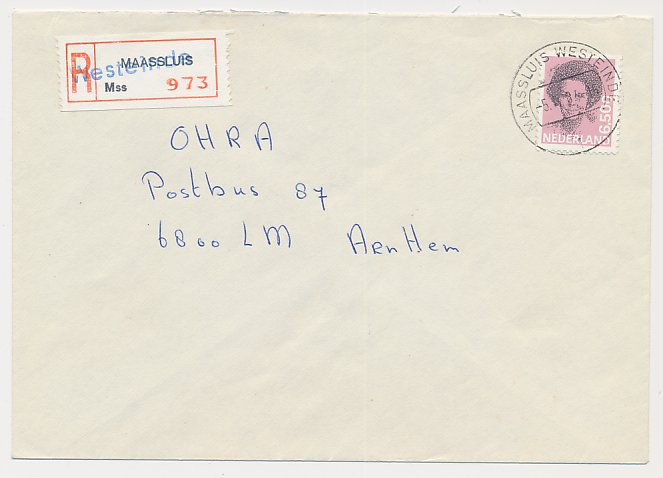 Aangetekend Maassluis Westeinde 1984 - Overstempeld strookje