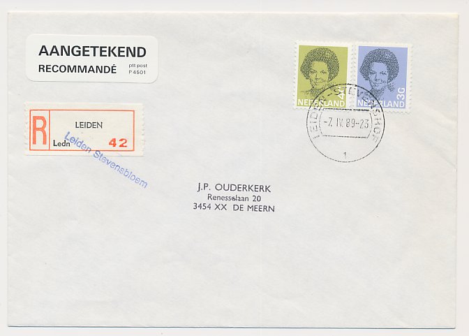 Aangetekend Leiden Stevensbloem 1989 - Overstempeld strookje
