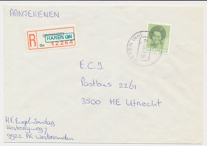 Aangetekend Haren Gn 1991 - Overstempeld strookje Groningen