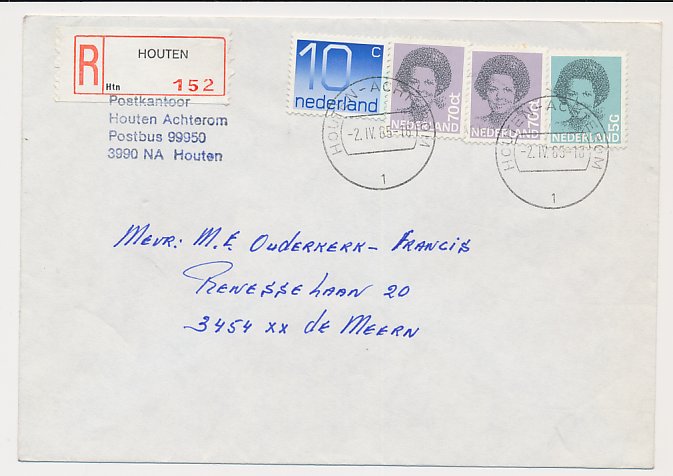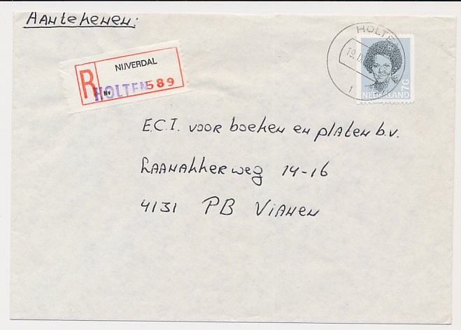 Aangetekend Holten 1987 - Overstempeld strookje Nijverdal