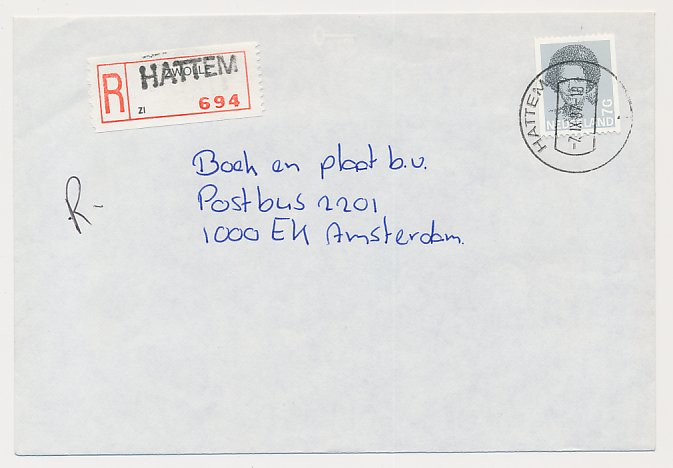 Aangetekend Hattem 1987- Overstempeld strookje Zwolle