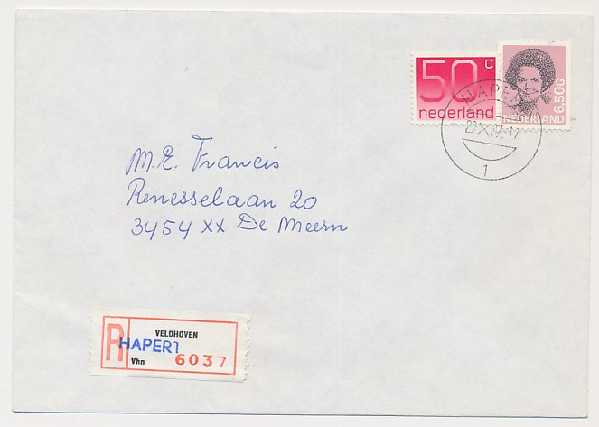 Aangetekend Hapert 1987- Overstempeld strookje Veldhoven