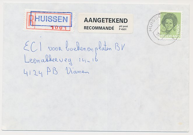 Aangetekend Huissen 1991 - Gestempeld strookje
