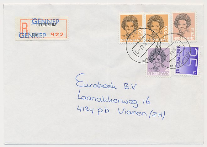 Aangetekend Gennep 1987 - Overstempeld strookje Ottersum