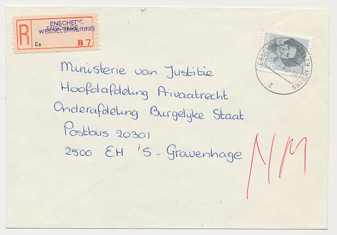 Aangetekend Enschede Wesselernering 1986 - Overstempeld strookje
