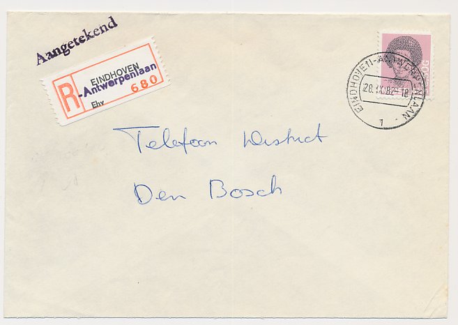 Aangetekend Eindhoven Antwerpenlaan 1982 - Overstempeld strookje