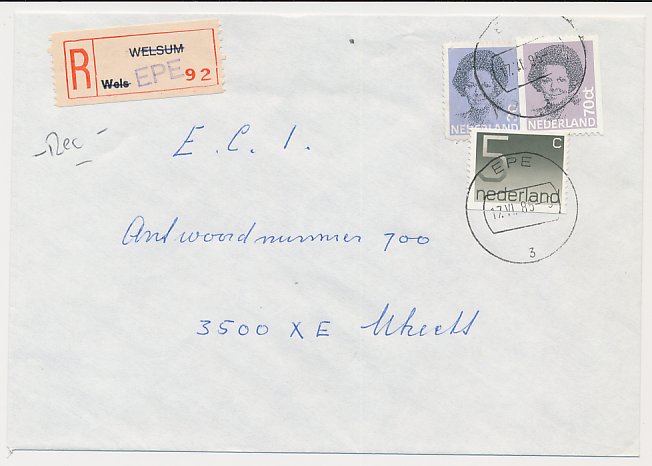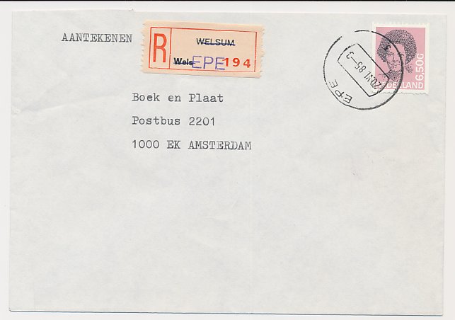 Aangetekend Epe 1985 - Overstempeld strookje Welsum
