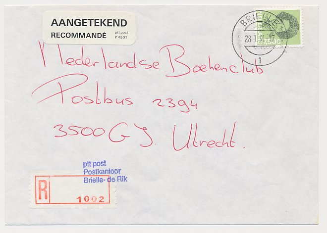 Aangetekend Brielle de Rik 1991 - Gestempeld strookje