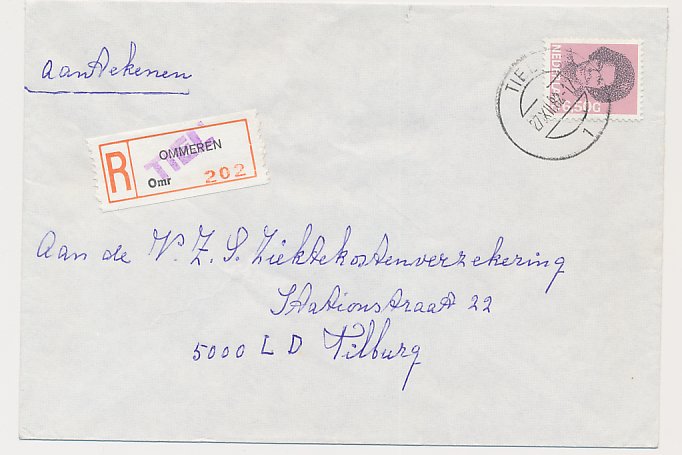 Aangetekend Tiel 1982 - Overstempeld strookje Ommeren