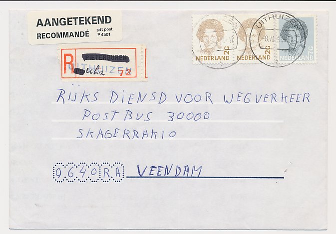 Aangetekend Uithuizen 1994 - Overstempeld strookje Pieterburen