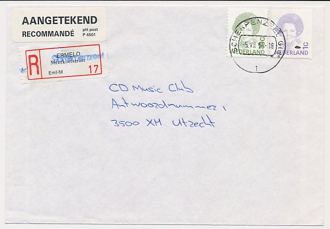 Aangetekend Scherpenzeel 1996 - Overstempeld strookje Ermelo