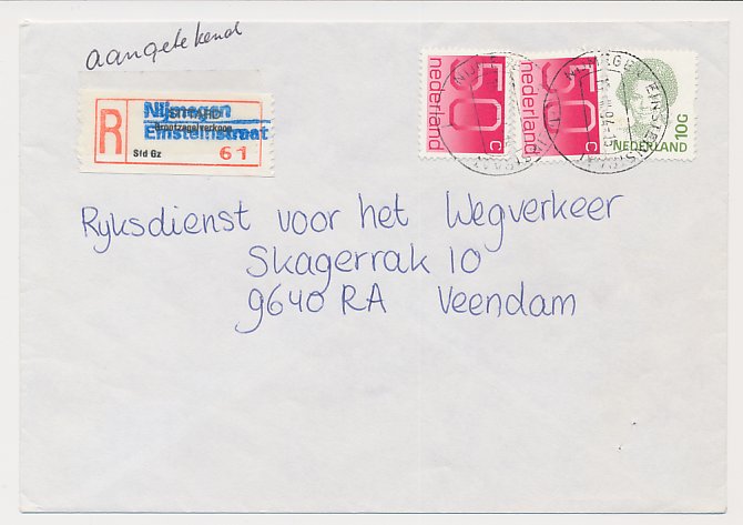 Aangetekend s Gravenhage Jonckbloetplein 1984 - Overstempeld strookje